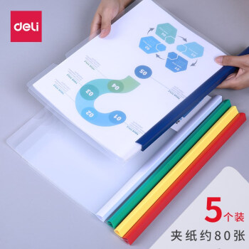 得力(deli) 5850 A4水滴形抽杆夹拉杆夹文件夹 8mm 5色彩色透...