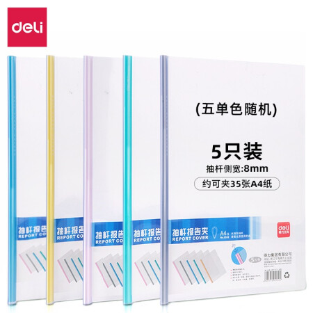 齐心 A856 晶彩欢颜 报告夹,A4,抽杆式,30张,五色套装
